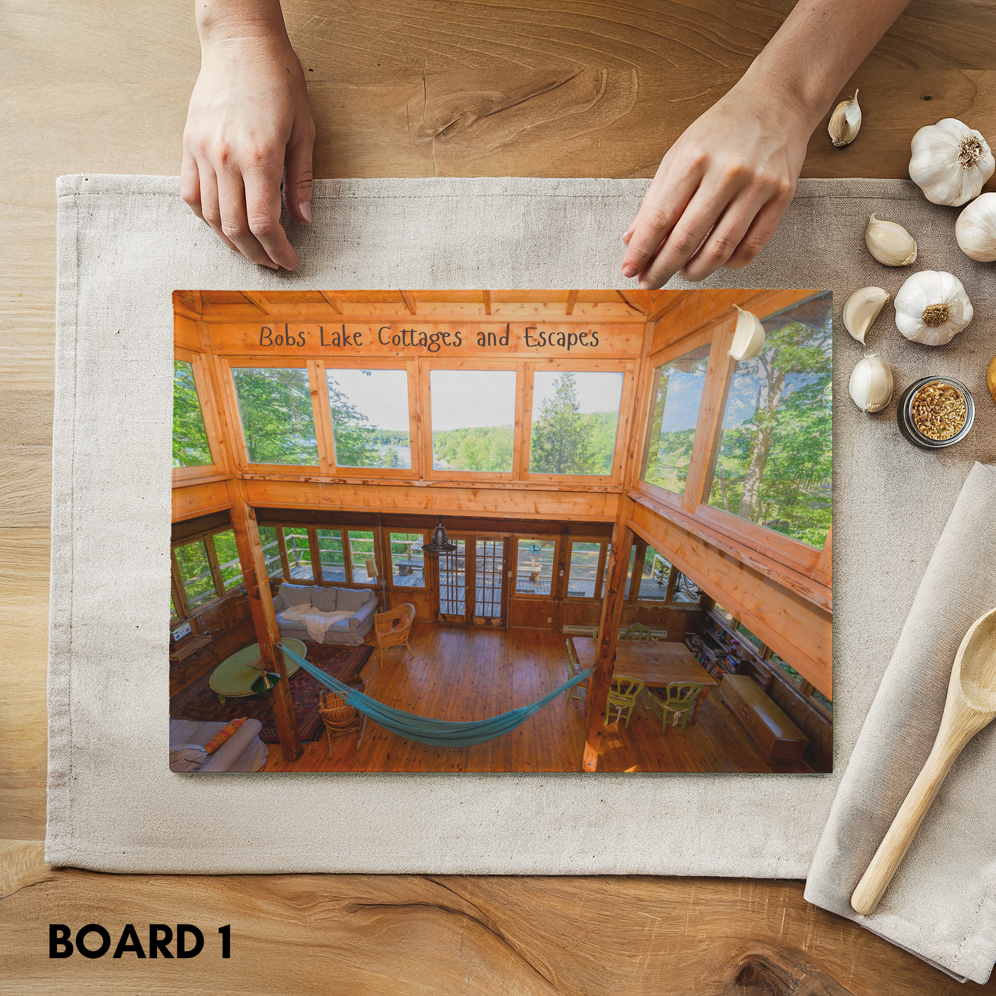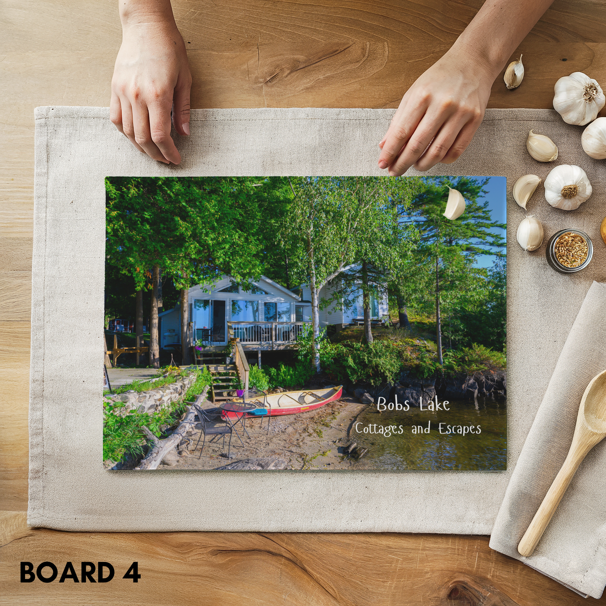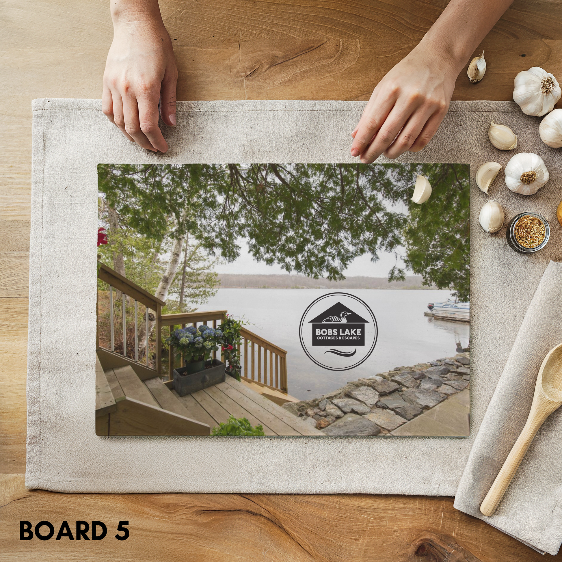 Select from our images of Bobs Lake or choose the board marked "Upload my image". Once you place your order, we will personally reach out to receive your custom preference. Each board is sublimation printed individually for vivid color and long-lasting clarity.